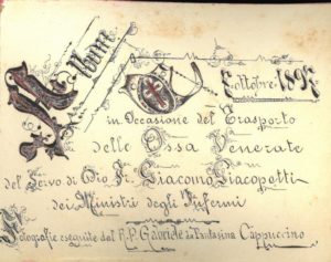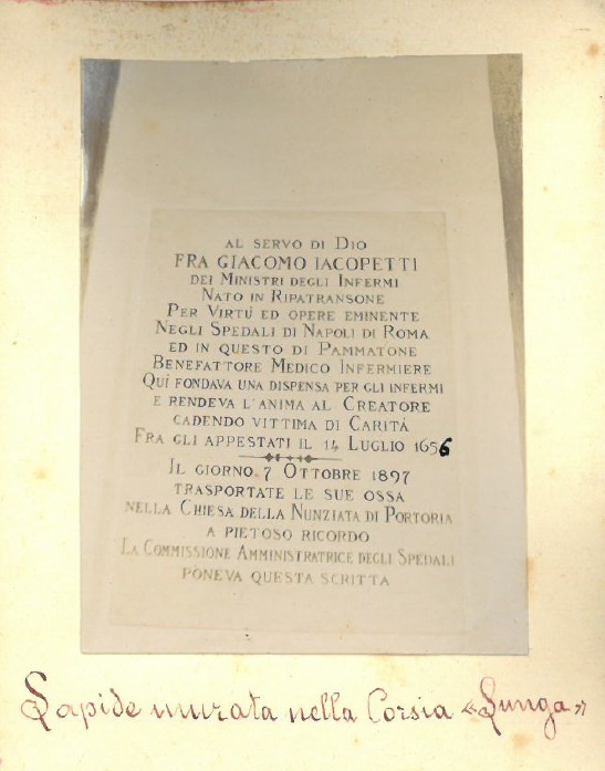 [2] Carcereri Stanislao,Vita del servo di Dio Giacomo Giacopetti laico professo dell’Ordine dei CC. RR. Ministri degl’Infermi, Verona : G. Marchiori, 1897, p. 17