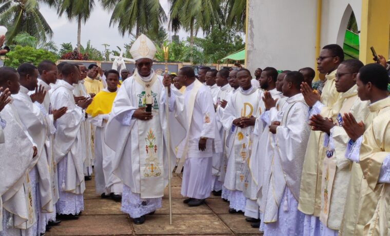 Domenica 15 settembre 2024 presso la casa di formazione San Camillo di Sègbanou è stata celebrata la messa di ringraziamento a livello provinciale. È stata l’occasione per i due nuovi sacerdoti DASSOU Pacôme e Arlus ADJIBODON, consacrati il giorno prima, di celebrare l’eucarestia ad intercessione della provincia camilliana in Benin. A loro si sono aggiunti i neo diaconi VIDAGBANDJI Hyppolite e Ulrich Silvère MBAIGNANBE. Questa Messa è stata celebrata in ringraziamento per i religiosi che hanno emesso i loro voti temporanei e perpetui, per l’ordinazione diaconale e sacerdotale, per il giubileo d’argento di professione religiosa e per il sesto anniversario dell’erezione canonica della provincia camilliana del Benin-Togo.
