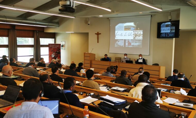 Ieri, durante l’intervento di p. Laurent, i capitolari hanno reso omaggio al defunto Superiore generale p. Leocir Pessini.