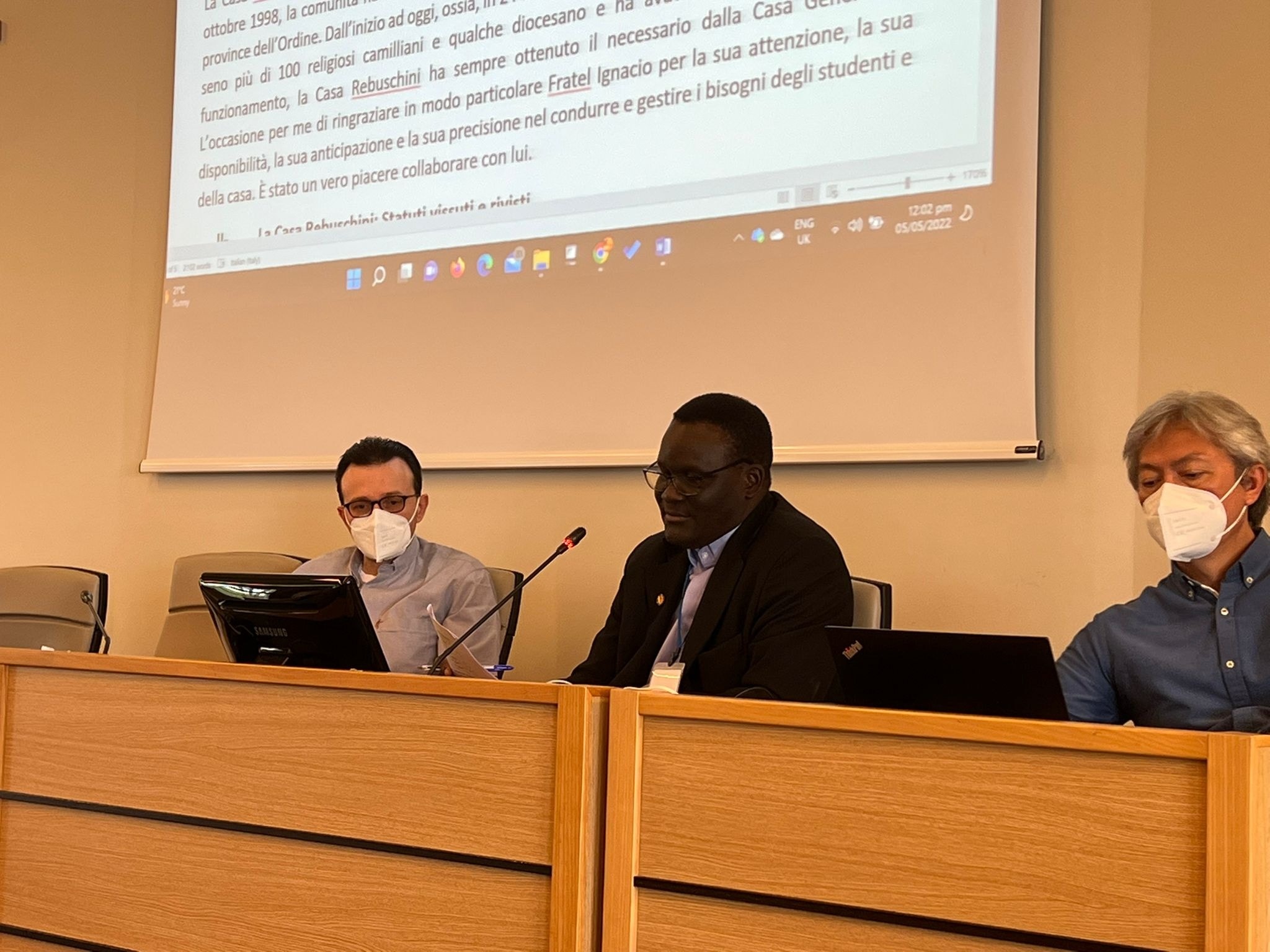 Dopo aver presentato l’idea originaria (le ragioni della creazione della comunità), l’erezione canonica stessa della comunità e il suo funzionamento, abbiamo presentato i primi Statuti e quelli rivisti, questi Statuti che hanno regolato la vita e la presenza dei religiosi nella Casa Rebuschini. Poi, abbiamo parlato delle difficoltà senza dimenticare di sottolineare il bene che la Casa Rebuschini ha fatto all’Ordine intero in questi 24 anni. Per questo, ho riportato ciò che ha detto Padre MONKS: “La Casa Rebuschini è una comunità importante nella vita dell’Ordine…la vedo in continuità con il collegio internazionale di Marino, in grado di offrire una meravigliosa opportunità per gli studi specialistici in aree di fondamentale importanza per il futuro dell’Ordine ed insieme la possibilità di vivere in un sano ambiente camilliano…”