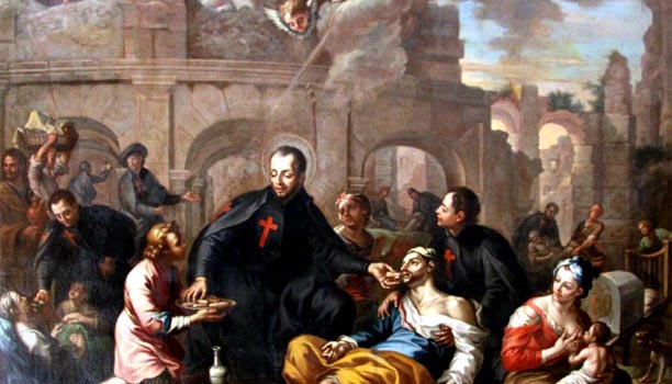 In copertina particolare del dipinto ““San Camillo fra gli appestati”, custodito nel museo dell’Ordine in piazza della Maddalena a Roma.