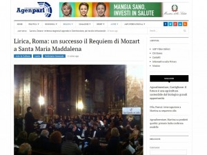 Agenparl – Lirica, Roma: un successo il Requiem di Mozart a Santa Maria Maddalena – 26/03/16