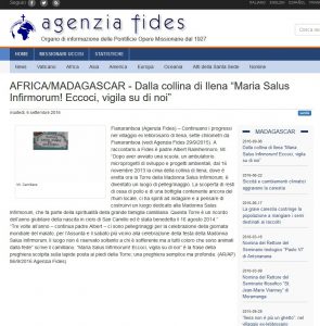 Agenzia Fides – AFRICA/MADAGASCAR – Dalla collina di Ilena “Maria Salus Infirmorum! Eccoci, vigila su di noi” – 06/09/2016