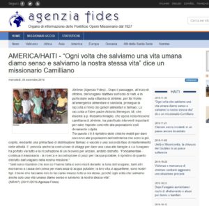 Agenzia Fides – “Ogni volta che salviamo una vita umana diamo senso e salviamo la nostra stessa vita” dice un missionario Camilliano – 30/11/16