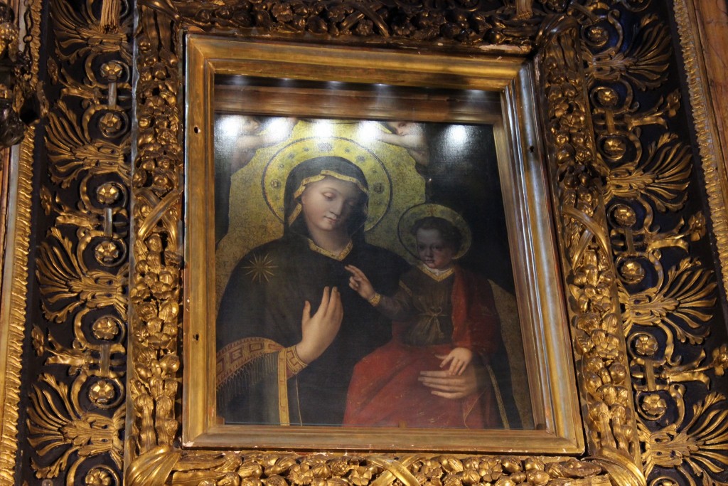 Proseguendo oltre la Cappella della Madonna della Salute troviamo un’altra nicchia che ospita la scultura in stucco raffigurante la Virtù dolente (Lacrimabilis) attribuita a Paolo Morelli.