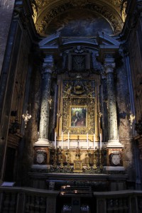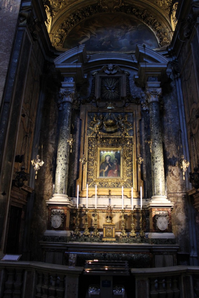 È una cappella volutamente molto sobria per dare maggiore evidenza alla venerata immagine della Madonna col Bambino (Salus Infirmorum), incoronata dal capitolo vaticano nel 1668 e nuovamente nel 1868, dopo che la dispersione dei beni ecclesiastici da parte di Napoleone comportò lo smarrimento delle antiche corone. L’immagine, un tempo collocata sull’altare maggiore, è un dipinto su tela, copia di ignoto pittore cinquecentesco da modello più antico, che ebbe molti proprietari, tra cui forse Papa Pio V e che fu donato alla chiesa da Settimia de’ Nobili nel 1614.