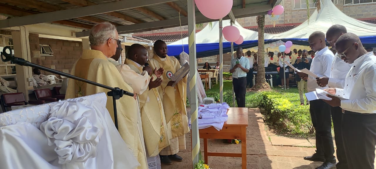 La Festa di S. Camillo ha visto un nutrito gruppo di parenti ed ospiti provenienti da diverse parti del Kenya che sono accorsi al Seminario S. Camillo per prendere parte a tre diverse occorrenze: (i) la professione temporanea di tre novizi, (ii) l’entrata in noviziato di quattro postulanti e (iii) la presa di responsabilità di tre persone della Famiglia camilliana laica della zona di Nairobi. Le tre cerimonie hanno avuto luogo nel corso della celebrazione eucaristica presieduta dal Delegato Provinciale p. John Njiru Ndwiga, assistito dai consiglieri di Delegazione e circondato da una ventina di concelebranti.