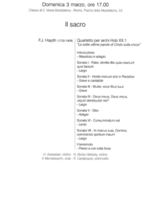 3 Marzo Chiesa di Santa Maria Maddalena – Roma – ore 17,00 Festival Concertando 2019 al via Stagione concerti del Pontificio Istituto di Musica Sacra Roma –