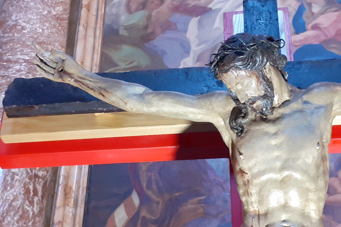 Un episodio emblematico che racconta l’intensa relazione di San Camillo con questo Crocifisso avviene quando, disperato e incerto sulla sua missione, si inginocchia davanti ad esso, cercando conforto. Fu allora che sentì, come un abbraccio divino, le braccia del Crocifisso aprirsi verso di lui, e una voce che gli diceva: “Vai avanti, pusillanime! L’opera è mia, non tua; non aver paura, coraggio.” Questo incontro misterioso e spirituale segnò una svolta decisiva nella vita di San Camillo, confermando che il servizio ai malati non era solo un compito umano, ma una missione divina.