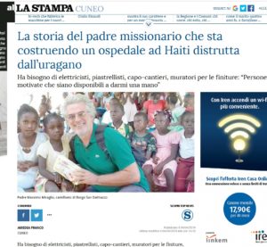 La Stampa – La storia del padre missionario che sta costruendo un ospedale ad Haiti distrutta dall’uragano 04/04/19