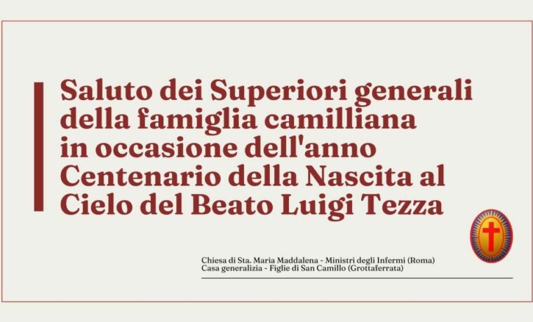 Questo Centenario, che nasce con l’intento di celebrare e ricordare il nostro caro beato padre Luigi Tezza, camilliano e fondatore delle Figlie di San Camillo si offre quale opportunità per una sorta di “pellegrinaggio”, nella storia del nostro istituto e più in generale in quella dell’Ordine dei Ministri degli Infermi, attraverso il vissuto quotidiano del Beato padre Luigi Tezza, riscoperto ed approfondito anche grazie al riordino del suo consistente epistolario, che prossimamente verrà pubblicato in forma integrale.