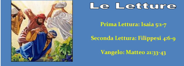 Sia la prima lettura che il Vangelo esprimono un canto d’amore che è iniziato con gioia ma si è concluso con tristezza. Ma il paradosso di questa canzone è che l’amato che è stato rifiutato, ingannato e tradito dalla gente diventa la pietra angolare che restituisce a se stesso chi rifiuta, imbroglia e tradisce a causa del suo amore incondizionato per il suo popolo.