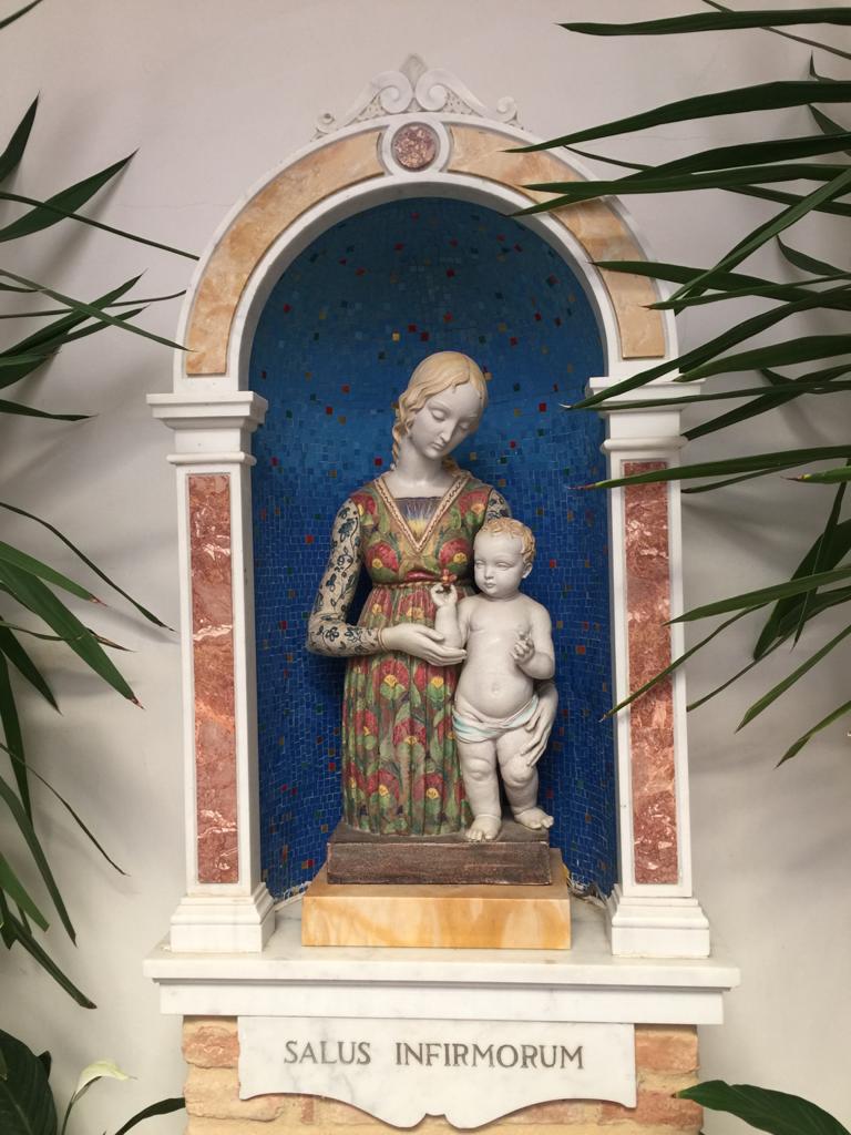 O Salute degli Infermi, o Madre della misericordia, o Maria, non si contano le grazie che voi continuamente elargite ai poveri infermi; ponete anche me sotto la vostra protezione, a voi vengo, a voi ricorro; voi conoscete quello che a me giova di più: o Madre della Salute, ottenetemi da Gesù o la rassegnazione o la salute. – Ave Maria