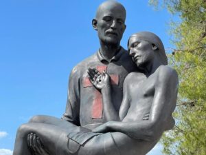 L’opera realizzata dall’artista Peter Porazik sarà la prima in Italia dedicata a San Camillo e alle vittime di questa pandemia. Lo scultore, interpretando il pensiero e il credo dei Religiosi Ministri degli Infermi, ha voluto ritrarre San Camillo de Lellis, Patrono Universale dei malati, degli infermieri, degli ospedali e della Sanità Militare, nell’atto di soccorrere un malato cristiforme recante in una mano una mascherina, diventata ormai simbolo dell’attuale pandemia, e mostrante nell’altra le stimmate di Nostro Signore Gesù. Ciò a significare la presenza di Cristo in ogni uomo sofferente colpito dal virus.