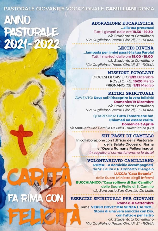 Gli appuntamenti si svolgeranno tutti i martedì alle ore 18,00 presso lo Studentato Camilliano “Nicola D’Onofrio”, alla Camilluccia (Roma).
