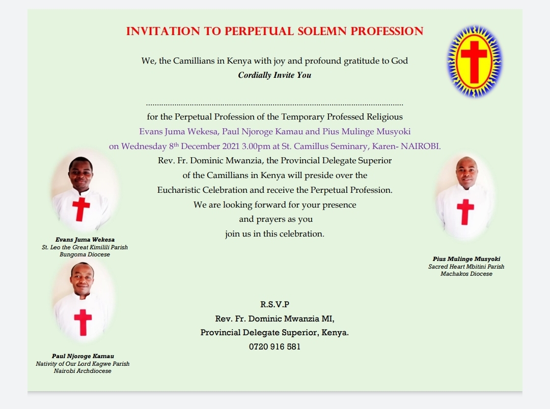 Il 17 novembre 2021, p. Laurent Zoungrana, vicario generale dell’Ordine, con il consenso dei consultori ha ammesso alla professione religiosa solenne, tre religiosi professi temporanei della provincia nord italiana // delegazione del Kenya: