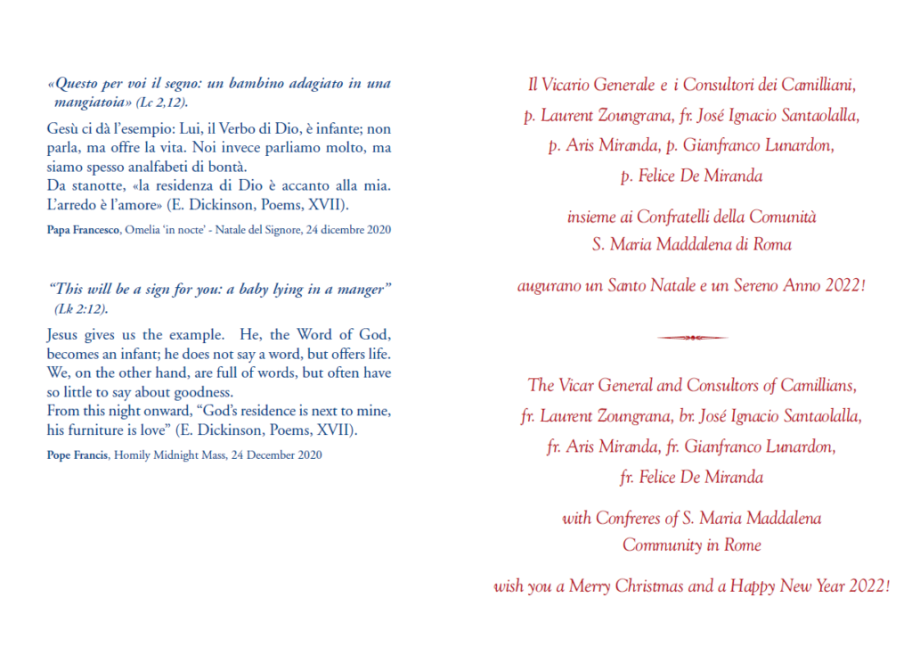 SANTO NATALE DEL SIGNORE – FELICE 2022, RICCO DI PACE E DI FEDE!