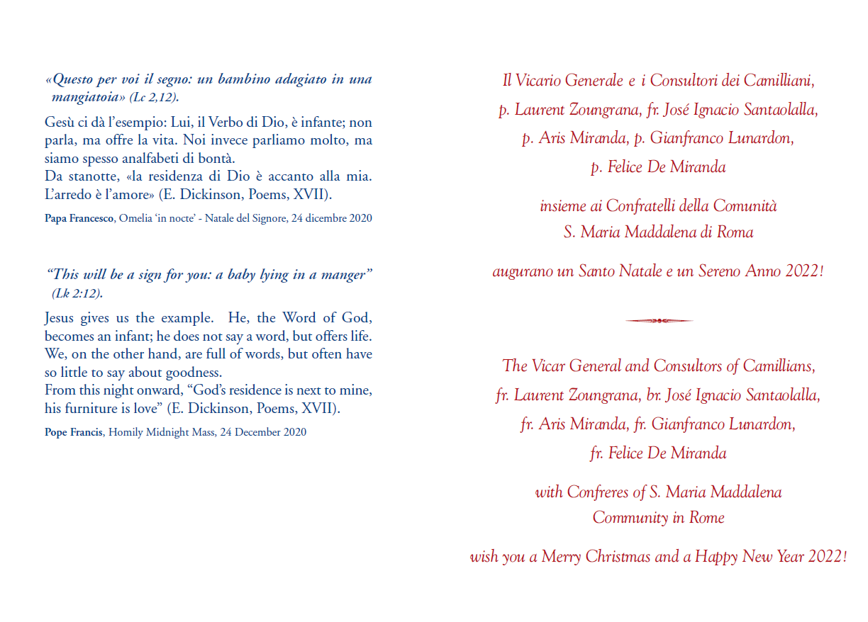 Il 5 dicembre si è celebrato anche il primo anniversario della morte violenta di fr. Leonardo GRASSO, religioso camilliano, ucciso proprio nella casa da lui fondata e animata, dedicata al sostegno dei malati di Aids. CONTINUA QUI