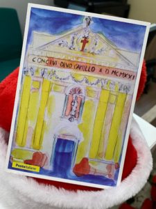 Sempre nell’ambito delle celebrazioni è stata realizzata anche una cartolina con un’opera contemporanea dipinta dal giovane pittore Massimiliano Ferragina che rappresenta il santuario come “Fonte di grazia” per quanti vi entrano.