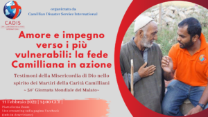Lo scorso 11 febbraio 2022, CADIS International ha organizzato una conferenza virtuale in occasione della 30° Giornata Mondiale del Malato, dal titolo “Amore e impegno verso i più vulnerabili: la fede camilliana in azione”. Gli ultimi due anni sono stati particolarmente impegnativi a causa della diffusione della pandemia COVID-19. L’assistenza di soccorso e recupero dei Camilliani non si è mai fermata. Sono profondamente innamorati e configurati alla loro ispirazione originale nello spirito dei Martiri Camilliani della Carità in grazia di Dio; sempre al fianco dei più vulnerabili. Le diverse testimonianze dei camilliani e dei beneficiari si sono intrecciate in un lungo viaggio attraverso le voci dalla base, dal sud al nord, voci che hanno affrontato le sfide del tempo e le hanno prese come opportunità di crescita. CONTINUA QUI