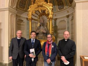 In occasione della ricorrenza della nascita al cielo di Santa Giuseppina Vannini, mercoledì 23 febbraio 2022, al mattino, la chiesa della Maddalena a Roma si è arricchita di una nuova opera d’arte. La pittrice coreana Sun Hee Moon ha donato ai Camilliani un quadro raffigurante il Beato Padre Luigi Tezza