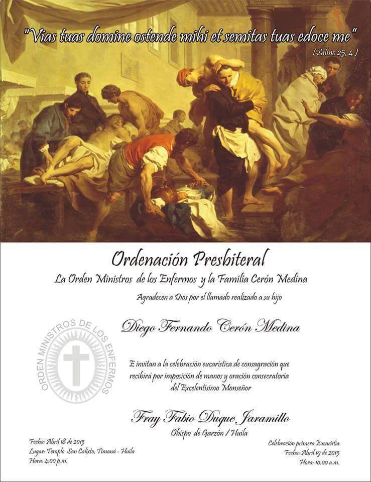 Luciano Ramponi, a nome dei religiosi camilliani della Delegazione, condivide la gioia per la prossima ordinazione sacerdotale del nostro confratello Diego Fernando Cerón Medina.