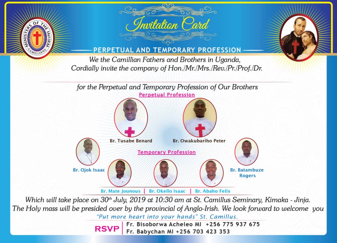 Five Ugandan novices, who can be seen in the photographs, will make their temporary vows in Jinja (Uganda) on 30 July 2019.