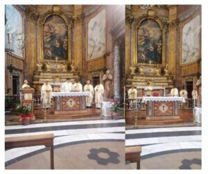 Celebrazione Eucaristica presieduta da S. Em.za Rev.ma Card. Angelo De Donatis, Vicario Generale di S.S per la Diocesi di Roma, nella Chiesa di Santa Maria Maddalena in Campo Marzio, curia generalizia dei Ministri degli Infermi. Con la presenza del Superiore generale Rev.do padre Pedro Tramontin, la consulta generale; il provinciale della Provincia Romana, sacerdoti camilliani e padre Augusto Bussi Roncalini, parroco di Santa Maria in Aquiro.
