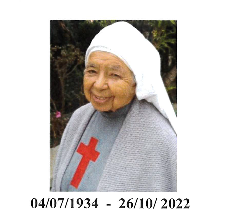 Le consorelle Figlie di San Camillo comunicano la morte di suor Avelina (Isabel) Vieira (nata il 4 luglio 1934 – deceduta il 26 ottobre 2022). Brasiliana di origine, aveva 88 anni di cui 70 anni di consacrazione religiosa al servizio dei malati.
