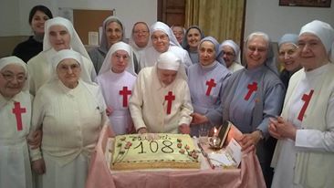 Rinnoviamo i nostri migliori auguri a sr. Candida Bellotti, che a Lucca ha festeggiato i 108 anni, candidandosi ad essere la religiosa più anziana del mondo. Nata a Quinzano (Verona) il 20 febbraio 1907, suor Candida è entrata a far parte nel 1931 della Congregazione delle ministre degli infermi di San Camillo, ha prestato la sua opera come infermiera professionale in diverse città d’Italia. Dal 2000 vive a Lucca, nella Casa madre dell’istituto, dove, nonostante l’età, partecipa ancora attivamente alla vita comunitaria.