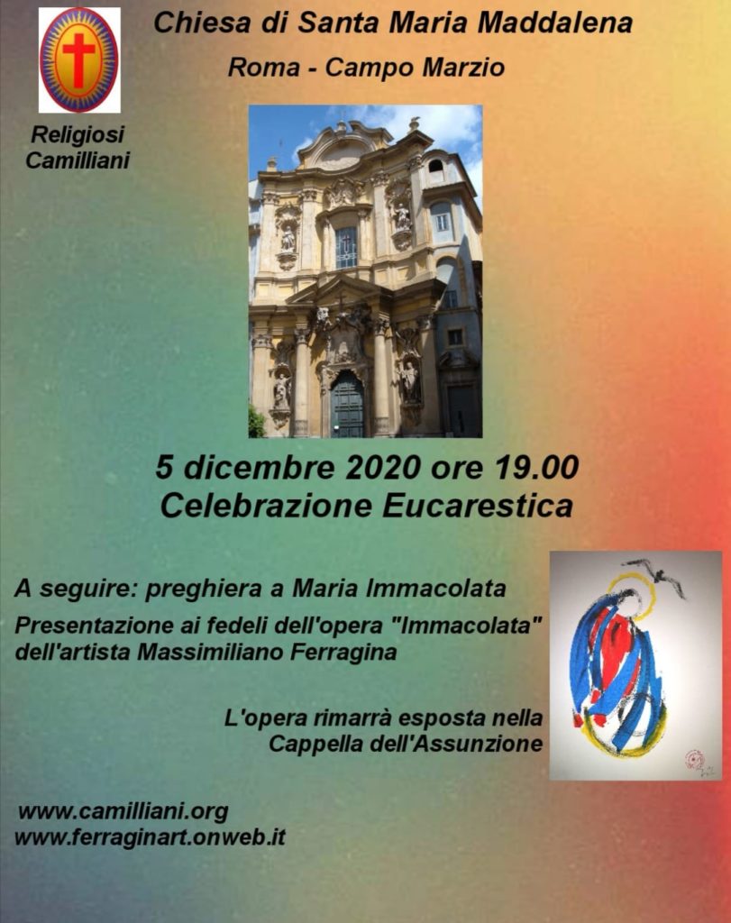 Dal 5 all’8 dicembre 2020, presso la Chiesa di Santa Maria Maddalena in Campo Marzo, sarà esposta nella Cappella dell’Assunzione l’opera “Immacolata” dell’artista Massimiliano Ferragina (onweb.it)