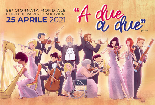 L’immagine (di Valerio Chiola) rappresenta un’orchestra fatta di diversi componenti, di tutte le età perché la fatica e la bellezza della comunità è cercare l’armonia che fa emergere la comunione nella differenza. Ciascuno suona il proprio strumento musicale che significa il proprio contributo a servizio della comunità, il compimento – così insegna il testo citato sopra da Nuove vocazioni per una nuova Europa – della persona nella realizzazione della comunità.