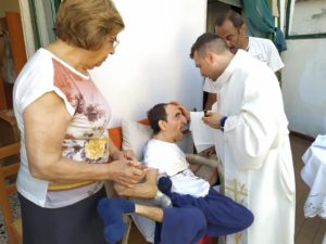 Proprio questa frase è stata il monito costante che ha echeggiato per l’intero servizio svolto ai fratelli infermi e agli amici della mensa nei giorni di preparazione alla Festa. La Novena di preparazione ha abbracciato i fratelli ammalati nelle varie parrocchie della diocesi, che avevano vissuto precedentemente la missione interparrocchiale guidata dalle sorelle Ministre degli infermi, le visite si svolgevano al mattino trovando il culmine con la celebrazione della S. Messa nel pomeriggio.