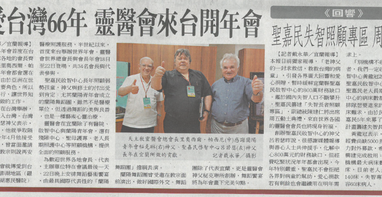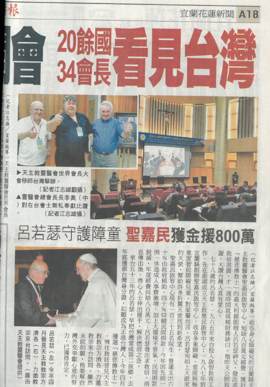Il padre Generale dei Camilliani con i provinciali di tutto il mondo si sono radunati a Lotung, Taiwan, anche per vedere il lavoro dei Camilliani verso i poveri e gli handicappati.