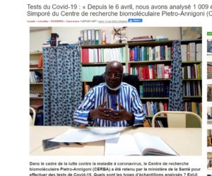 Tests du Covid-19 : « Depuis le 6 avril, nous avons analysé 1 009 échantillons », Pr Jacques Simporé du Centre de recherche biomoléculaire Pietro-Annigoni (CERBA)