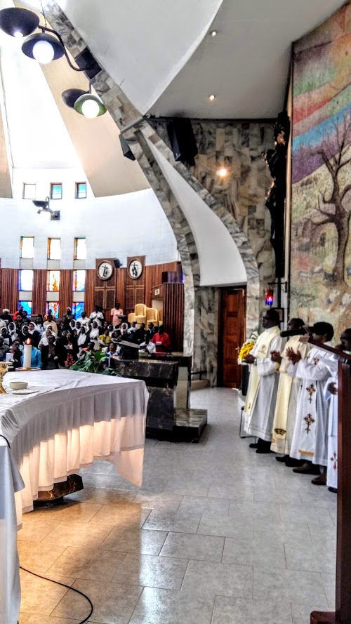 The celebration was presided over by the Auxiliary Bishop Msgr. David Kamau, with the presence of about twenty concelebrating priests. There were five Camillians present around the altar. More were planned but some had to go to the funeral of the mother of our religious Godfrey Wanyelo who was buried on the same day.