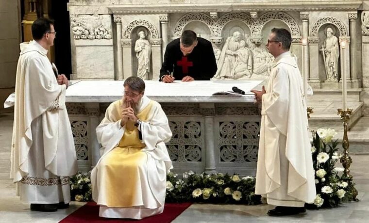 Quindi il rito ha proseguito con i due momenti più significativi: la professione dei voti nelle mani del Superiore Provinciale – promettendo di “servire in perpetuo gli infermi, anche con il pericolo di vita, in perfetta castità, povertà e obbedienza secondo la Costituzione e le Disposizioni dell’Ordine dei Ministri degli Infermi” – e la solenne preghiera di benedizione o consacrazione che è il culmine dell’intero rito in cui il celebrante ha invocato il dono dello Spirito Santo su Lorenzo, affinché “con la sua vita consacrata, al Dio d’amore, edifichi la Chiesa, promuova il carisma della carità verso gli infermi e, incontrando il fratello sofferente, possa riscoprire in lui il volto del Redentore per servirlo con un cuore di madre”.