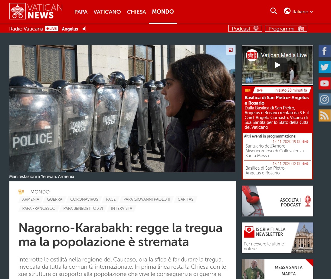Vatican News – Nagorno-Karabakh: regge la tregua ma la popolazione è stremata 11/11/20