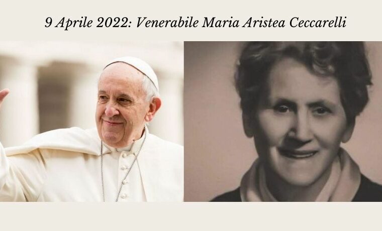 Il Santo Padre Francesco, sabato 9 Aprile 2022, alle ore 10,30 ha autorizzato la Congregazione delle Cause dei Santi a promulgare il decreto riguardante le virtù eroiche della Serva di Dio MARIA ARISTEA CECCARELLI, Fedele Laica; nata il 5 novembre 1883 ad Ancona (Italia) e morta il 24 dicembre 1971 a Roma (Italia) aggregata al nostro Ordine Camilliano!